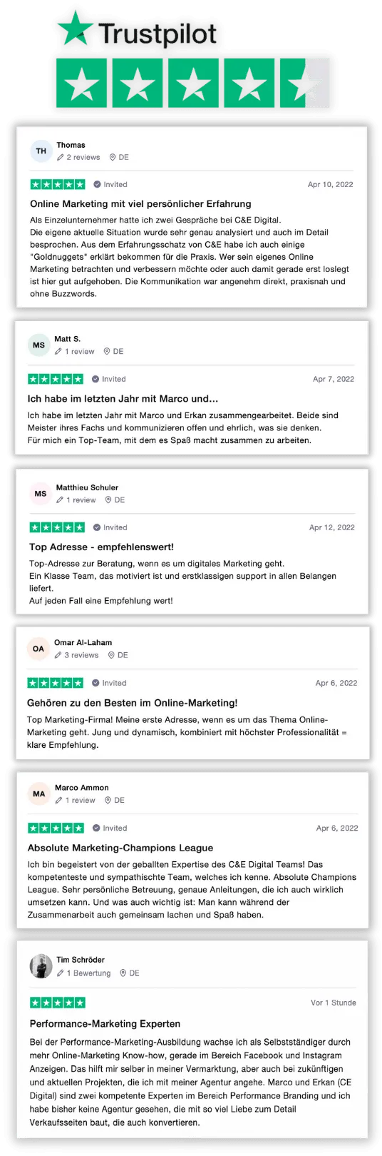 deren Erfolge mit der Firma